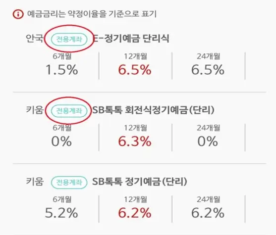 SB톡톡에서 확인되는 '전용계좌' 표시가 되어있는 예금 상품의 경우에는 단기간계좌개설 20일 제한없이 개설이 가능한 장점이 있습니다. 수시입출금계좌가 아닌 오로지 예금 전용계좌로 개설되는 것 입니다. 물론 기존의 해당 저축은행에 기존 보유한 입출금계좌가 있다면 그걸로 예금상품에 가입하셔도 무방합니다.